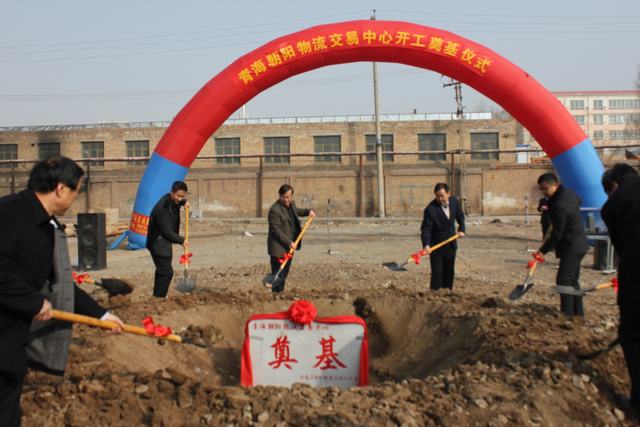 2014年2月25日10時(shí)16分,青海朝陽物流交易中心開工奠基儀式在朝陽物流園區(qū)項(xiàng)目建設(shè)現(xiàn)場如期舉行。奠基儀式由青海朝陽物流有限公司工會主席漆海寧主持。青海省物產(chǎn)集團(tuán)總公司總經(jīng)理王玉輝、投資經(jīng)營部部長劉延虎,青海朝陽物流開發(fā)投資有限公司總經(jīng)理王俊杰、副總經(jīng)理喇軍民以及青海朝陽物流有限公司副總經(jīng)理史巖、青島沿海建筑設(shè)計(jì)有限公司副總經(jīng)理侯林森、蘭州華鐵工程監(jiān)理咨詢有限公司西寧分公司總理孔祥海、甘肅省建筑基礎(chǔ)工程公司總經(jīng)理任建成參加了奠基儀式。