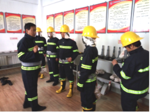 現(xiàn)場演示微型消防站防護(hù)用具的穿戴及使用方法,進(jìn)一步細(xì)化了滅火戰(zhàn)斗組、救援組各所屬人員的責(zé)任分工,并對(duì)各類防護(hù)、逃生、破拆工具的實(shí)際用途做了詳細(xì)的講解說明。