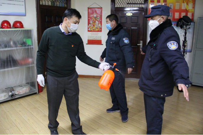 民爆公司黨支部黨員主動(dòng)承擔(dān)起防控工作,在日常消毒,防控檢查,都能看到他們的身影。