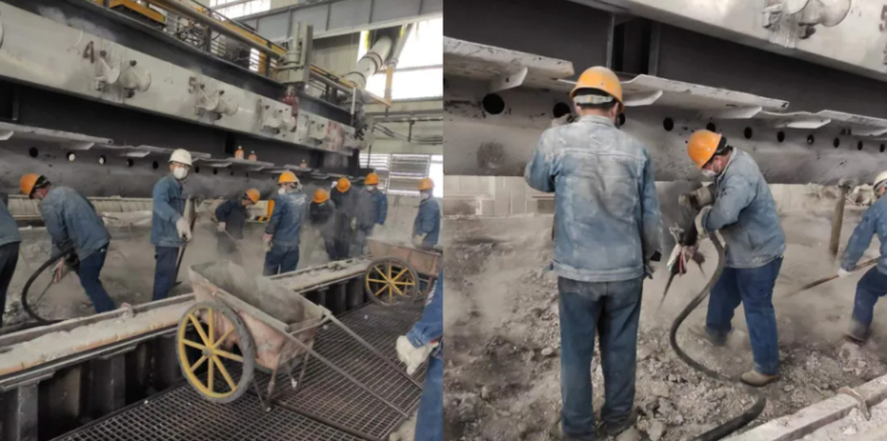 電解槽大修如同外科手術(shù),需在有限停槽期內(nèi)完成數(shù)個(gè)部件的拆解、檢測(cè)與更換。延誤一天,意味著效益的損失。為搶進(jìn)度,電解車間將人員分成四班倒,可實(shí)際干起來(lái),所有人都不約而同選擇了“連軸轉(zhuǎn)”。技術(shù)員小王剛下白班,見夜班人手緊張,抓起手套又鉆進(jìn)了槽底:“早一天啟動(dòng),就能多增加1噸多的鋁液!”槽頂排風(fēng)機(jī)的嗡鳴聲中,安全員老周扯著嗓門喊:“防護(hù)面罩戴緊!粉塵吸進(jìn)肺里要命!”他手里的強(qiáng)光手電掃過槽底,光束里翻騰的塵埃像一場(chǎng)無(wú)聲的雪暴。十幾米長(zhǎng)的電解槽如同被解剖的巨獸,槽殼敞露,陰極鋼棒上斑駁的電解質(zhì)結(jié)痂仿佛鱗片,記錄著它連續(xù)運(yùn)轉(zhuǎn)10多年的疲憊。這是大修的關(guān)鍵戰(zhàn)役—— 7天內(nèi),必須讓電解槽“復(fù)活”。