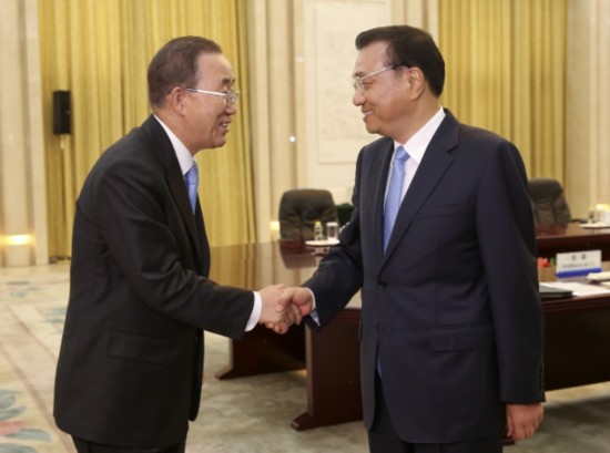 李克強(qiáng)總理會(huì)見(jiàn)聯(lián)合國(guó)秘書長(zhǎng)潘基文時(shí)說(shuō):"人類面臨的最大挑戰(zhàn),是在處理'減貧'和'應(yīng)對(duì)氣候變化'兩個(gè)問(wèn)題的過(guò)程中,取得一個(gè)平衡點(diǎn)。"