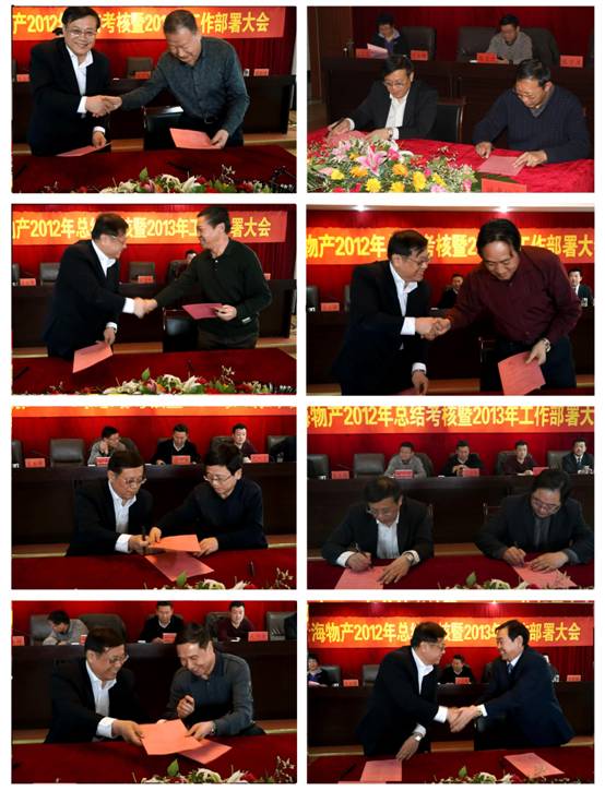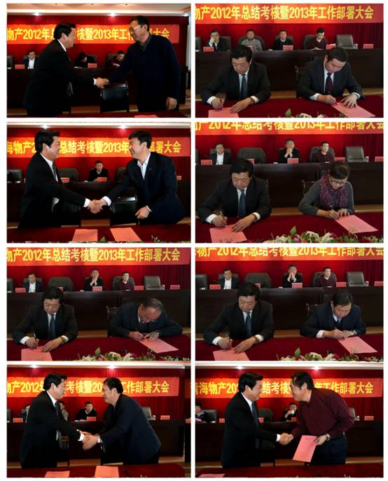 會上,由集團(tuán)總經(jīng)理王玉輝與所屬各公司、集團(tuán)各部簽訂2013年經(jīng)營業(yè)績目標(biāo)責(zé)任書,由集團(tuán)黨委書記白家林與所屬黨委(總支)、直屬黨支部簽訂黨建工作目標(biāo)管理責(zé)任書、與所屬各公司法定代表人簽訂黨風(fēng)廉政建設(shè)責(zé)任書。